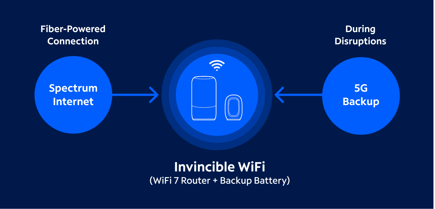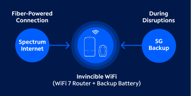 Spectrum Invincible WiFi delivers all the benefits of Advanced WiFi, plus a next-gen WiFi backup solution for peace of mind.