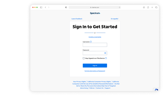 Use your spectrum.net username and password to log in.