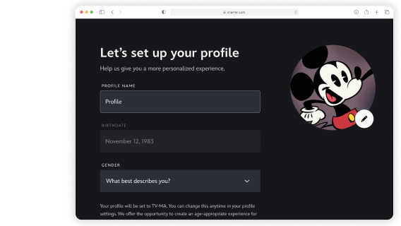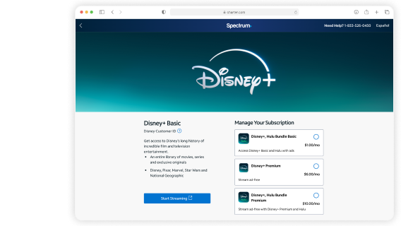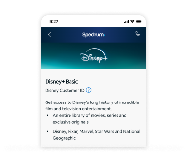 Disney+ is included at no extra cost with your Spectrum TV® plan. Just activate your account to start streaming.