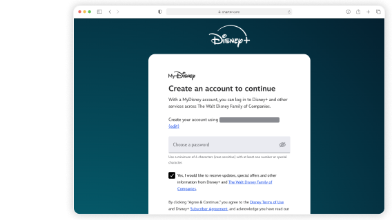 If you have an existing Disney+ account you can use your existing credentials. You’ll receive an email with details on how to manage your subscription.