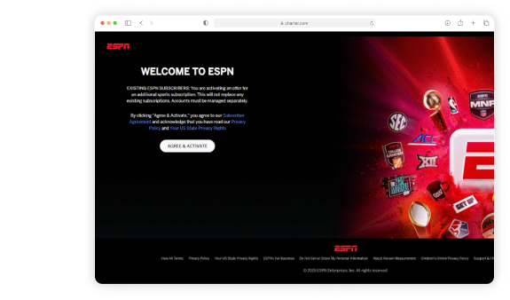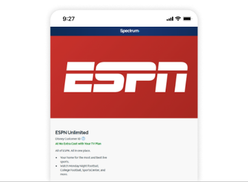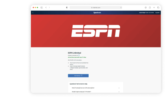 ESPN Unlimited is included at no extra cost with Spectrum TV®. Just activate your account to start streaming.